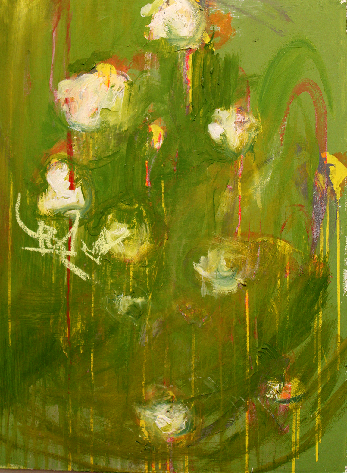 Low Green Garden, 24”x36” Mixed Media on Paper, 2023