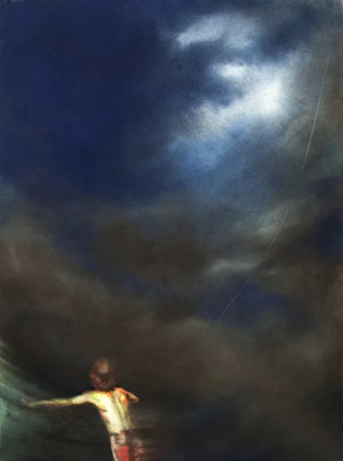 Night Dance Near The Cliff Pastel On Paper, 24”x36”, 2016