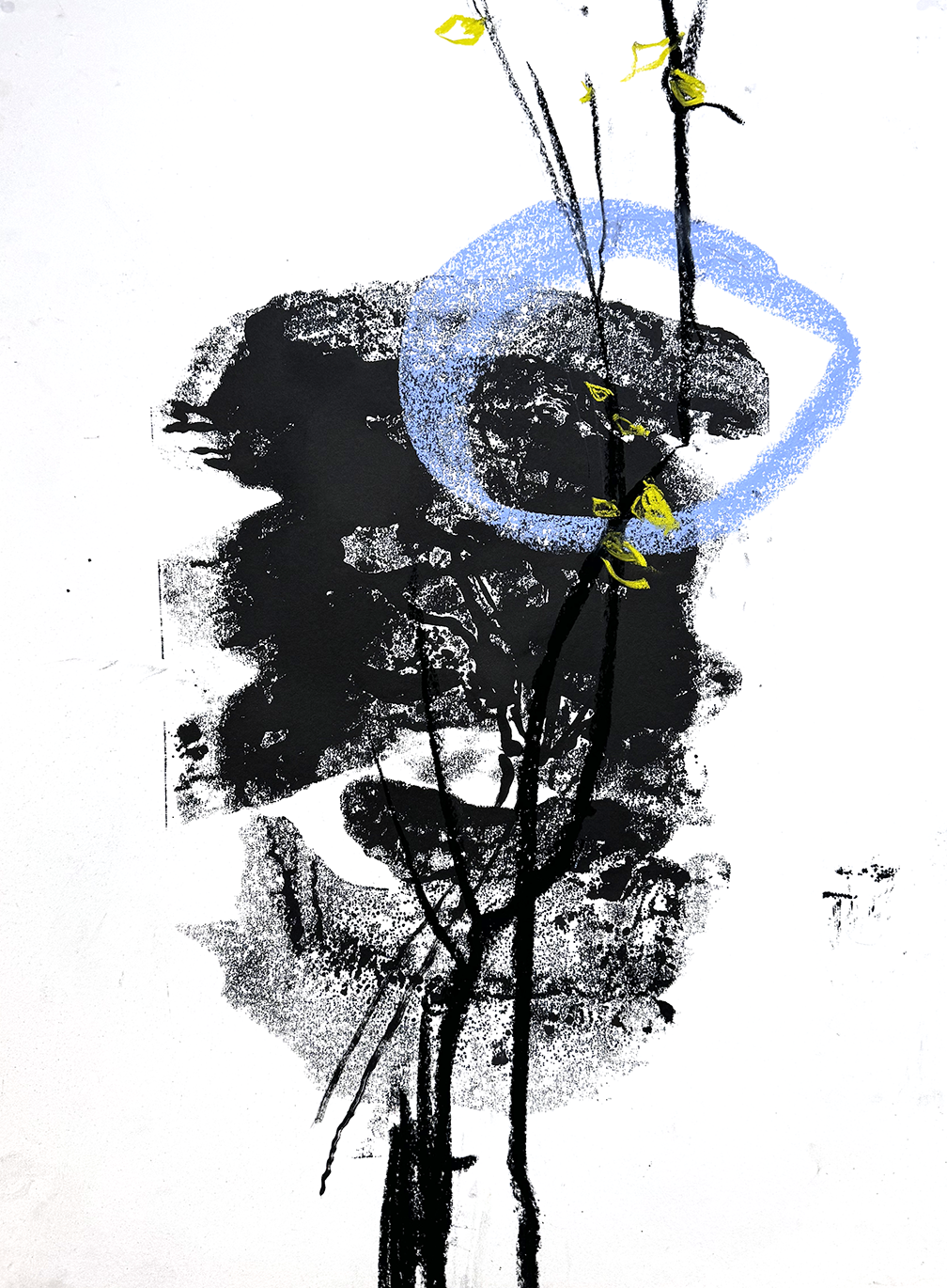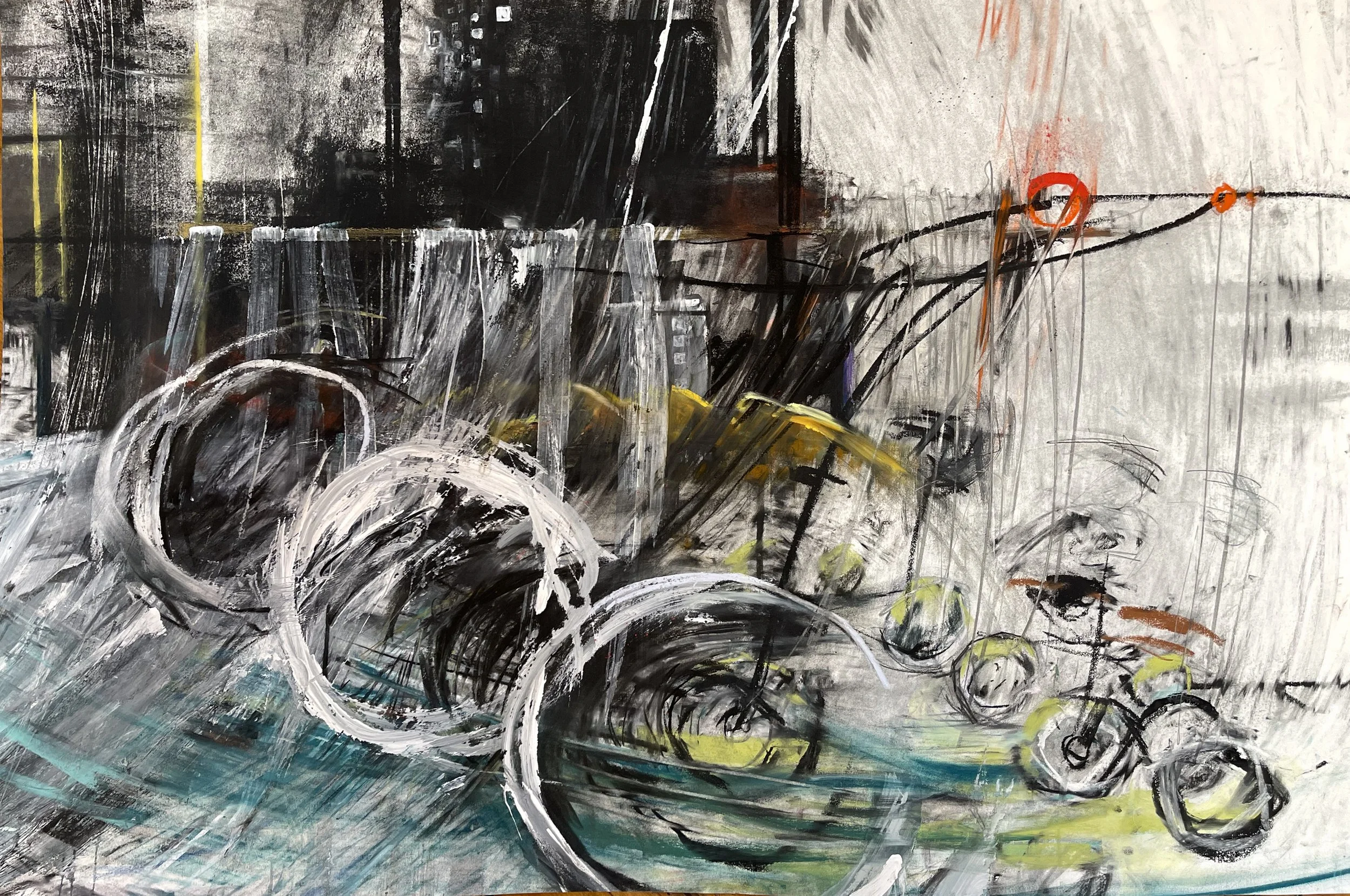 Spring Wring, Mixed Media on Paper, 24”x36”, 2023