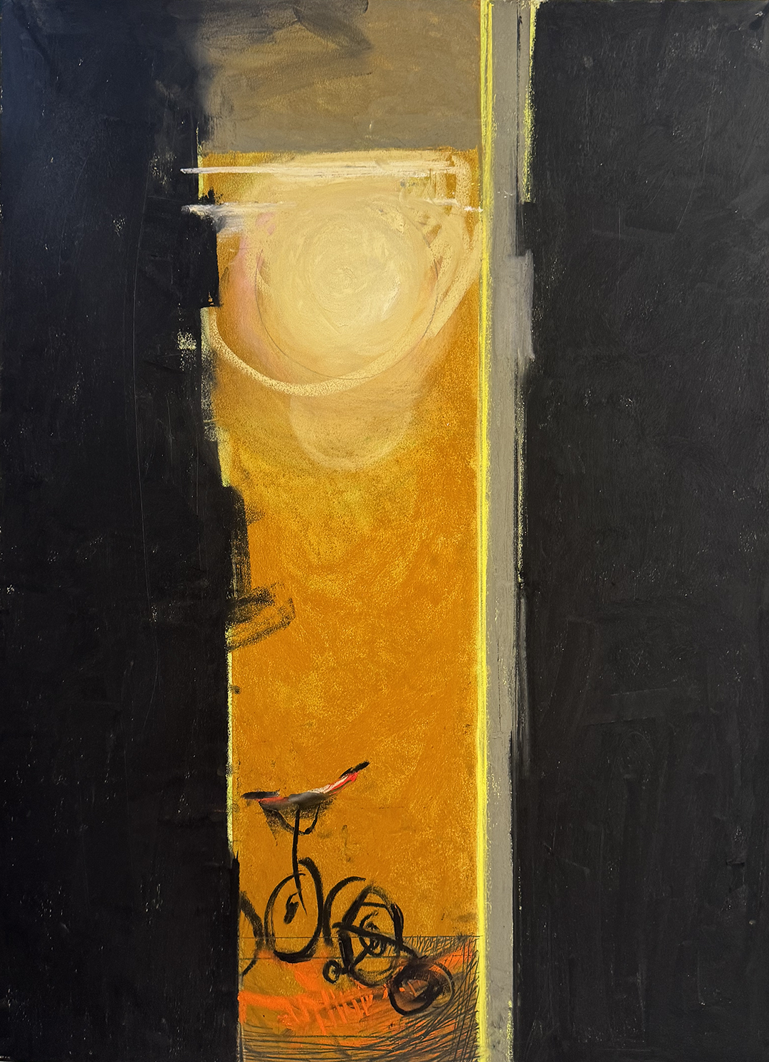 Two Moons and Ladder,24”x36”, Mixed Media on Paper, 2023